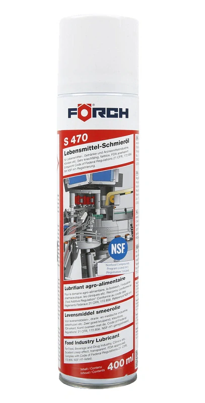 Förch S470 je speciální bezbarvé tekuté mazivo, určené pro použití v potravinářských a nápojových provozech, farmaceutických zařízeních a dalších oblastech s přísnými hygienickými požadavky. Díky certifikaci NSF-H1 je bezpečný pro náhodný kontakt s potravinami a zároveň poskytuje vynikající mazací účinek – zajišťuje spolehlivou ochranu a hladký chod mechanických součástí.