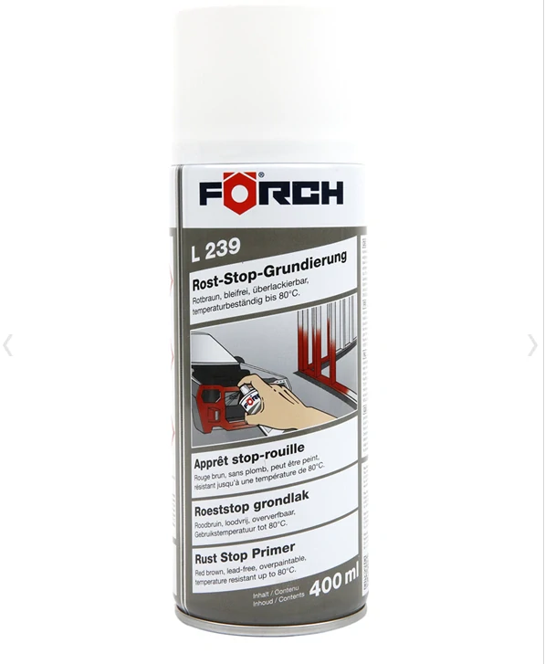 Förch L239 PROFI poskytuje spolehlivou a dlouhodobou ochranu kovových povrchů před počínající korozí a oxidací. Vyniká skvělou přilnavostí pro finální lak a velmi dobrou krycí schopností. Díky vysoké odolnosti zabraňuje dalšímu poškození povrchu. Barva je ve spreji, takže se snadno používá a dostane se i do těžko dostupných míst.